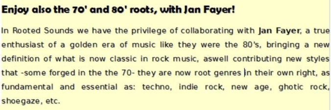Por lo tanto, como un artista o grupo indie, si tu música tiene ese inconfundible y fino aroma de las raíces del Rock, incluso siendo -como es- música actual (disfrutada por tanta gente), le daré la atención que merece , porque el sonido noble nunca muere!
